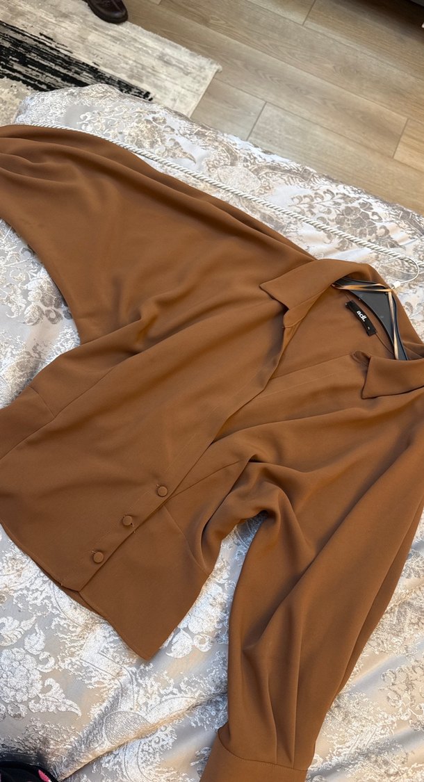 Bej Düğmeli Uzun Kollu Kadın Gömlek