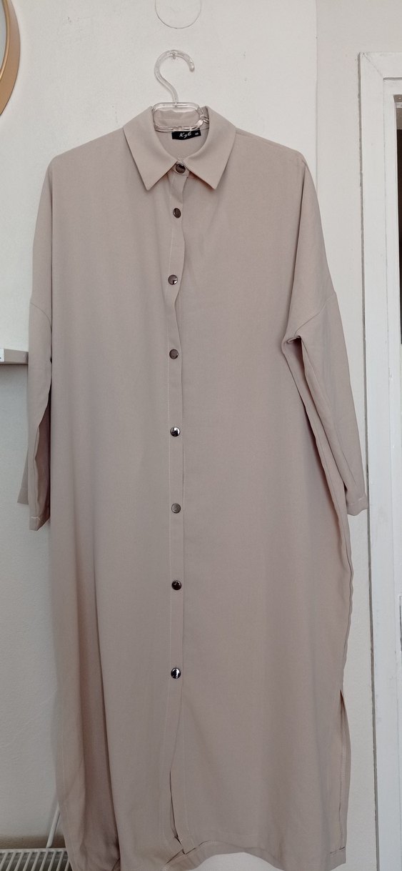 Bej renkte, düğmeli ve yakalı uzun kollu kadın tunik. Rahat kesimi ve minimalist tarzıyla günlük kullanıma uygun, yumuşak sentetik kumaştan üretilmiştir. Marka temsilidir.