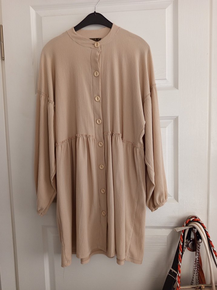 Bej Düğmeli Uzun Kollu Kadın Tunik