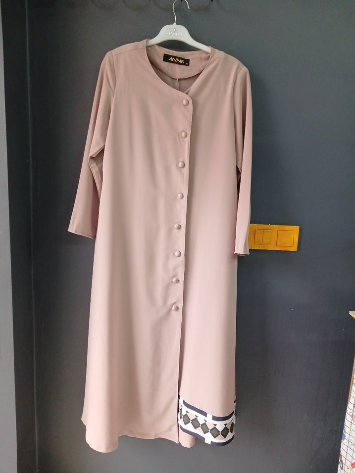 Bej Düğmeli Uzun Kollu Kadın Tunik