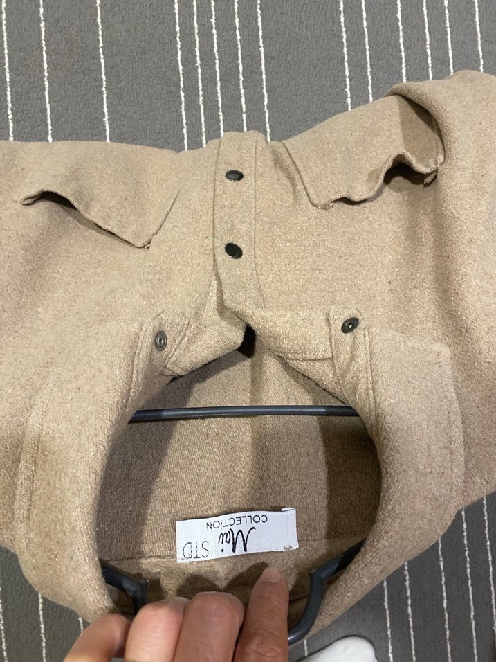 Bej Düğmeli Uzun Kollu Keten kaşe karışımı
