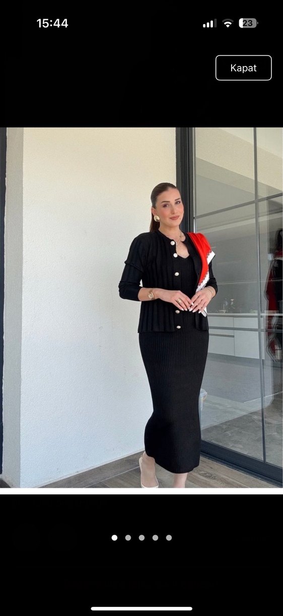Siyah Düğmeli Uzun Kollu Triko Takım