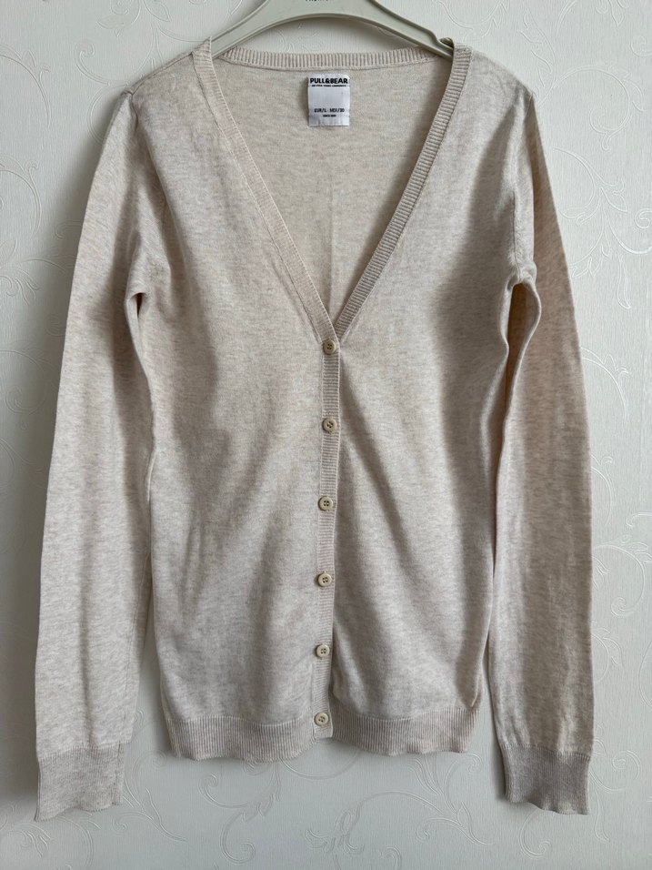 Pull&Bear #hırka #bej # çok az kullanıldı #%100 pamuklu. İnce triko. L beden, tertemiz. kusursuz, iki koltuk altı arası 43 cm boy 62 cm. Kol boyu 65 cm. Dar kesim #mango #zara #herry #network #massimo #fabrika #beymen #vakko #ipekyol #twist #stradivarius #bershka # pull&bear #gap #marks&spencer #fabrika #yargıcı #massimo #pull & bear #mavi #polo #benetton # mango #hırka #kazak #tüzün #Max Mara #burberry #chanel Bej renkli, uzun kollu, düğmeli ve V yaka kadın hırkası. Rahat ve bol kesimiyle gündelik kullanıma uygundur.