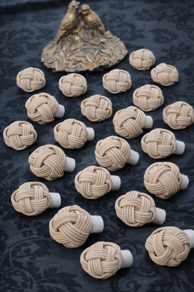 Bej renkli, örgü düğüm desenli dekoratif dolap kolları, gri desenli zeminde sergileniyor. Ev dekorasyonuna şık bir dokunuş katıyor. el yapimidir, dogalrattan kullanilir ,fabrikasyon degildir ,adet sayisin agore ayri ilan acilir .Sayiya gore adet fiyati degisir