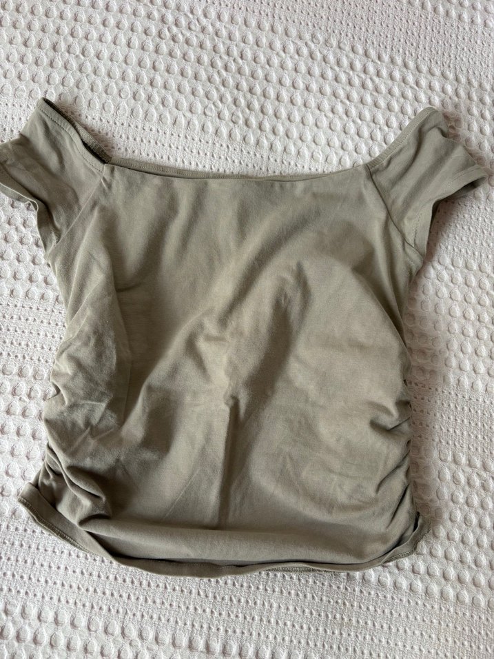 Bej düşük omuzlu kısa Kollu