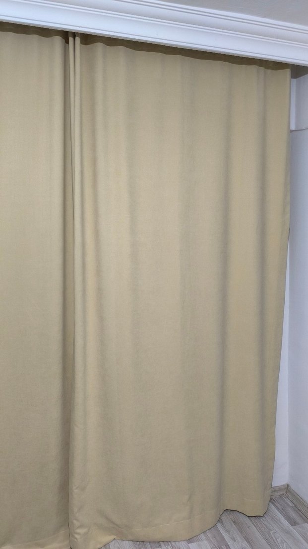 Bej renkte, düz ve hafif dokulu kumaştan yapılmış sade fon perde. sıfırdan farksız 2 adet fiyatıdır eni 132 boyu 245 cm