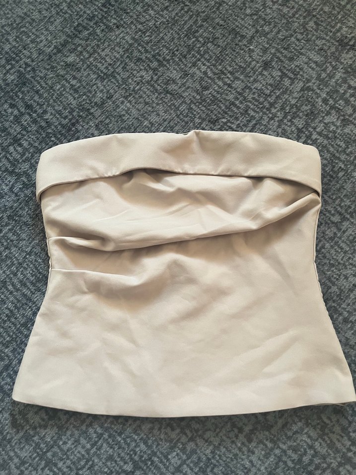Bej Düz Kesim straplez buluz