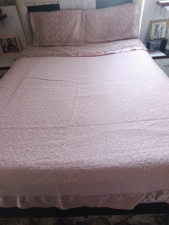 Pastel bej renkte, hafif dokulu düz yatak örtüsü. Yatağı düzgünce kaplar ve yatak odasına sakin bir hava katar. ️