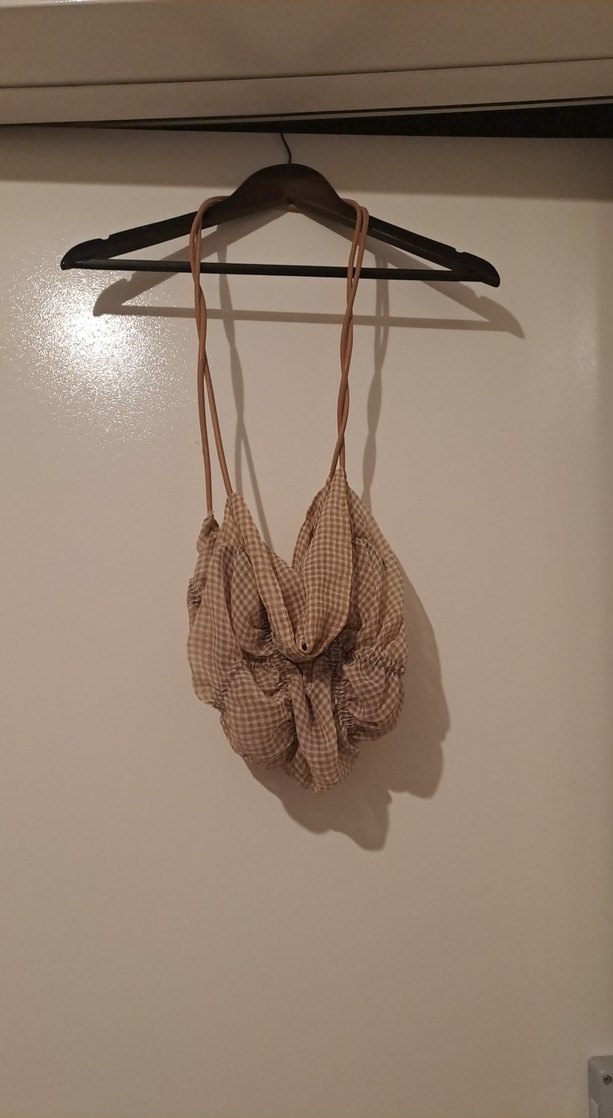 Bej ekose desenli, yumuşak dokulu çanta