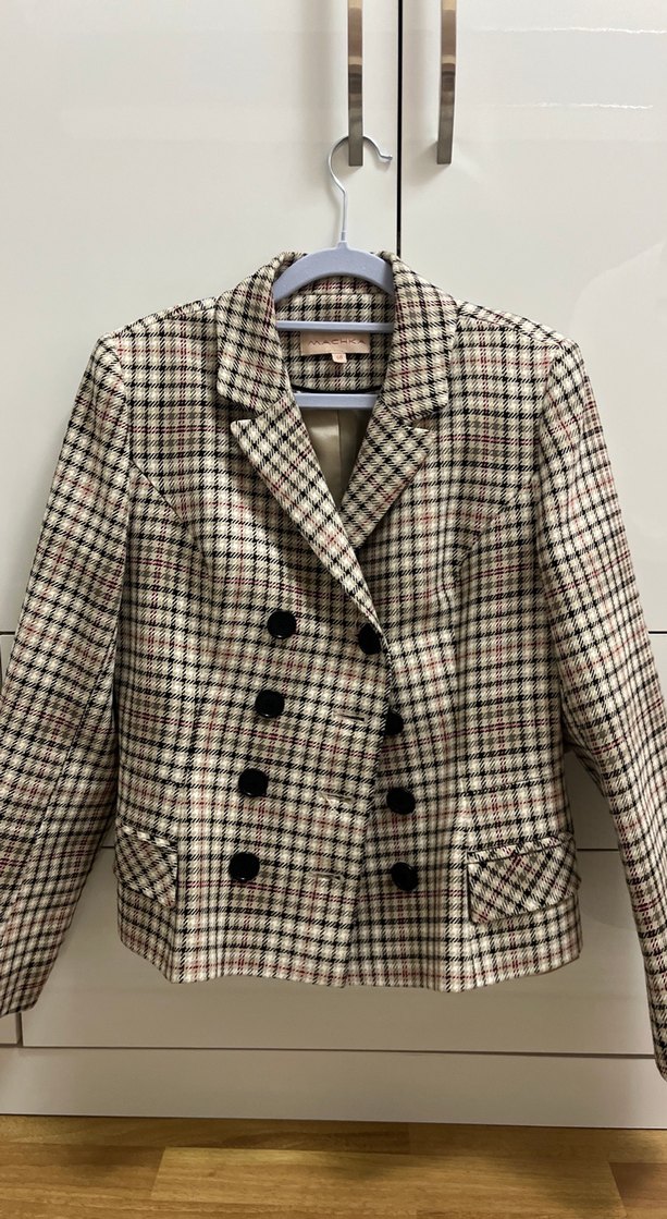 Bej Ekose Desenli Kadın Blazer Ceket