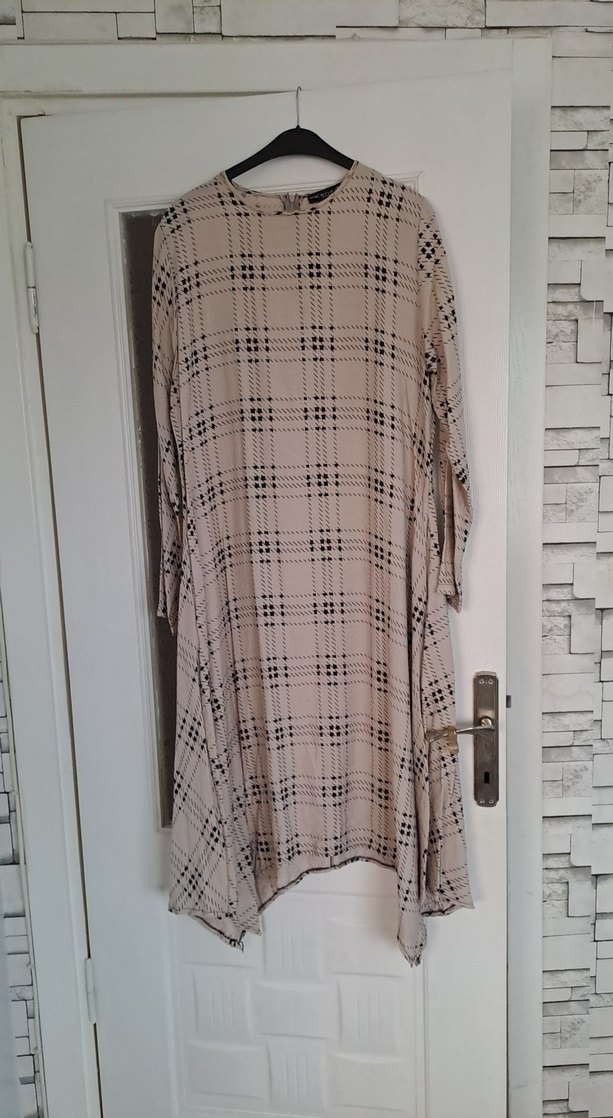 Bej renkte, keten kumaştan yapılmış, ekose desenli uzun ve bol kesim tunik. Uzun kollu, yuvarlak yakalı, bohem Paris tarzını yansıtır.