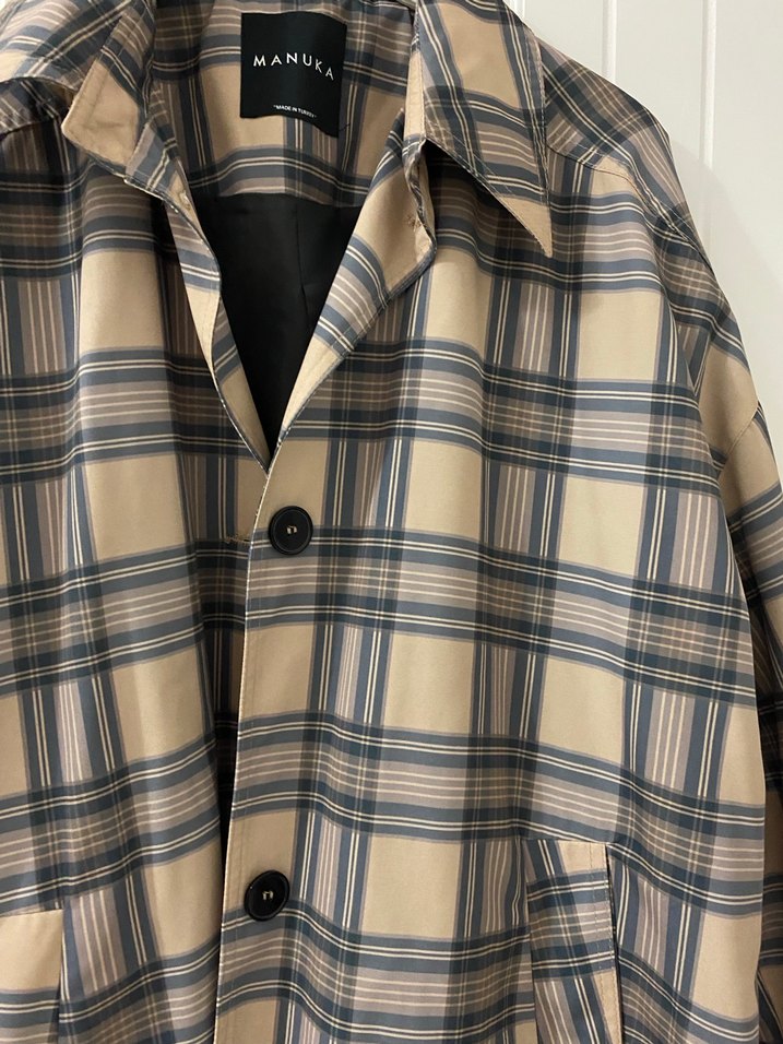 Bej Ekose Düğmeli Midi Kaban