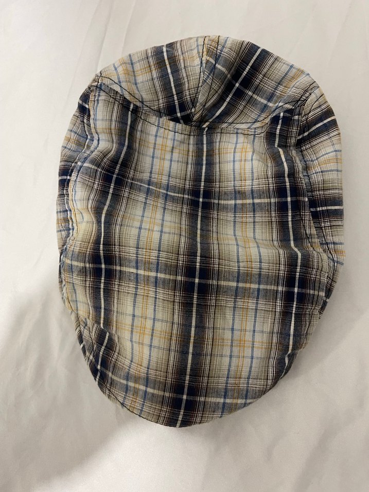 Bej ve gri ekose desenli erkek şapkası, rahat sokak tarzı için uygundur. Klasik ve rahat bir görünüm sunar.