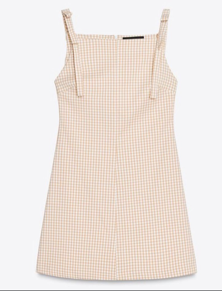 Bej renkli, ekose desenli elbise , kurdele detay omuz bağcıklarıyla pratik ve klasik bir tasarıma sahiptir. Gününüzü kolaylaştıracak bir elbise hiç giyinmedi Zara üretimini yaptığımız için firmamızdan aldım fakat hiç giymeden satıyorum