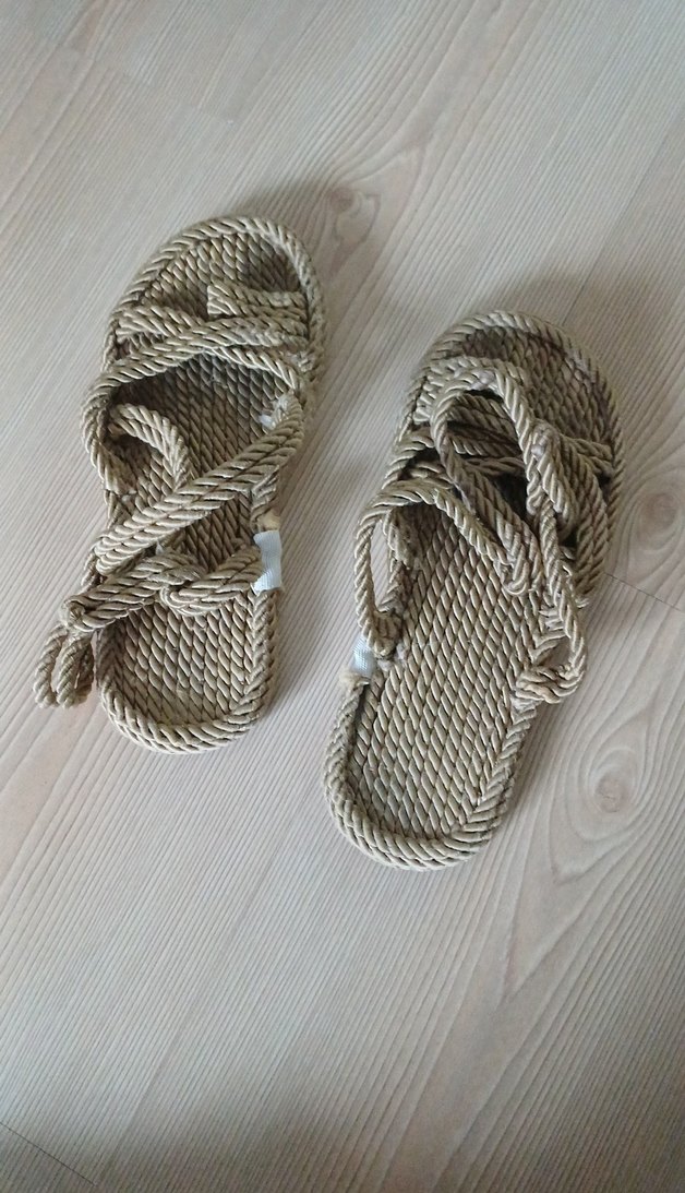 Bej renkli, elastik bantlı, düz tabanlı kadın sandalet. Minimalist ve bohem tarzda, günlük kullanıma uygun rahat malzemeden yapılmıştır.