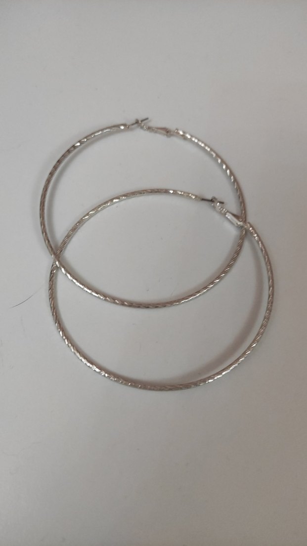 Bej elastik halka küpeler, gri tonlu sade tasarımıyla günlük kullanıma uygun, normal uzunlukta bohem tarzda.
