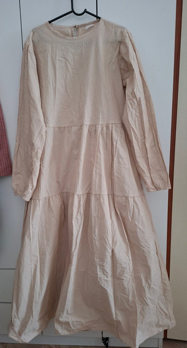 tofisa 46 beden uzun kollu bisiklet yaka elbise, bej renginde, sıfır