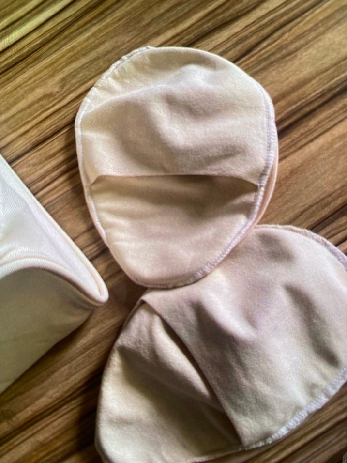 Yumuşak kumaştan üretilmiş, emzirme sırasında konfor ve emicilik sağlayan açık bej renkli göğüs pedleri. Çift slikon göğüs iade yok 105 beden