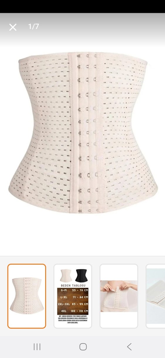 Bej renkte, dar kesim ve midi boyda doğum sonrası korsesi. Ayarlanabilir kanca kapamalar ve nefes alabilen destekleyici kumaş içerir. 3 gün giyildi beden değişikliği yüzünden satıyorum.