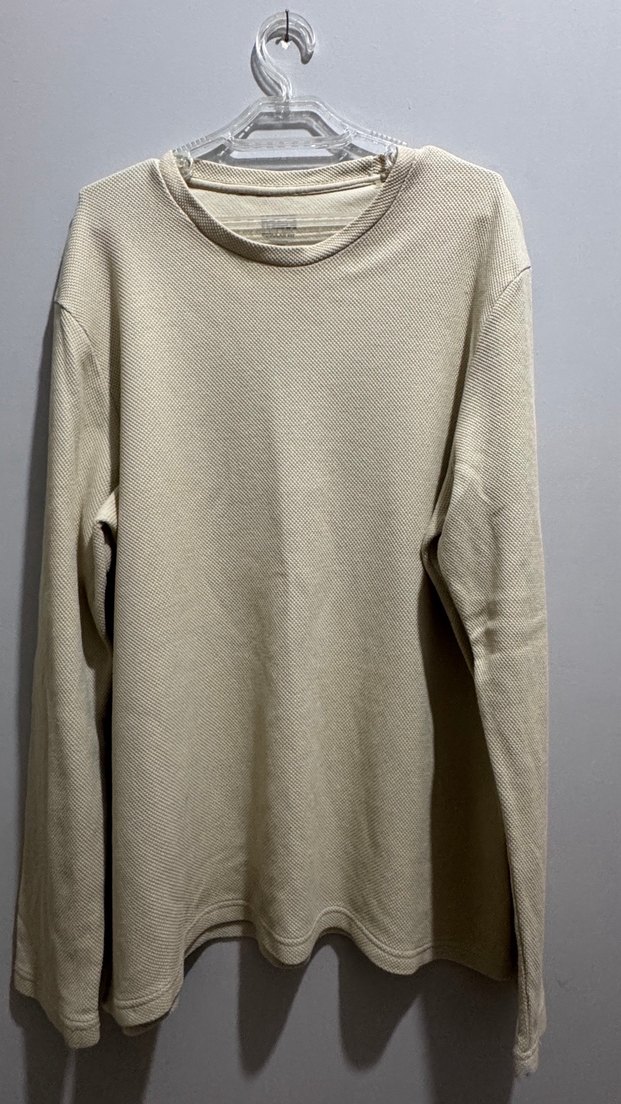 Bej renkli, yuvarlak yakalı ve uzun kollu erkek sweatshirtü. Rahat kesimi ve normal uzunluğu ile günlük kullanıma uygundur. %100 pamuk .