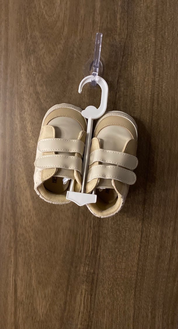 Bej renkli, cırt cırtlı, kauçuk tabanlı erkek bebek ilk adım ayakkabısı. Sokak tarzı için sade ve açık renklidir.