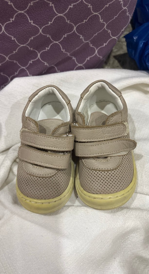 Bej renkli, cırt cırtlı ve kauçuk tabanlı erkek bebek ilk adım ayakkabısı. Düz ve desensiz, rahat bir dokusu vardır.