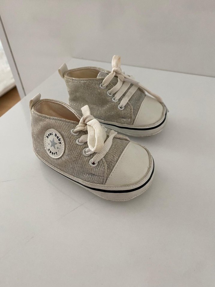 Yumuşak kauçuk tabanlı, desen içermeyen bej erkek bebek ilk adım ayakkabısı, rahat ve şık bir günlük stil sunar.