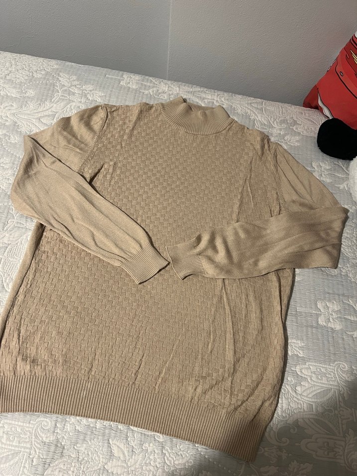 Bej erkek Boğazlı Triko Kazak