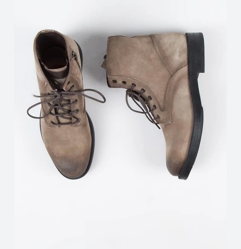 Dantel detaylı, desensiz bej erkek botları, sokak stiline uyumlu, zahmetsiz şıklık sunar.