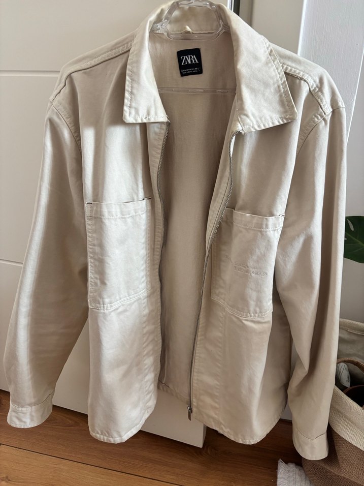 Bej renkte, keten kumaştan yapılmış, uzun kollu ve fermuarlı ceket. Rahat kesimi ve cepleriyle günlük sokak stiline uygundur.