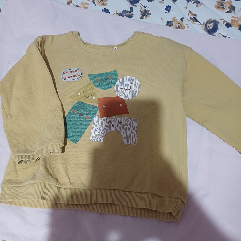 Bej renkli, örme kumaştan yapılmış, uzun kollu ve bisiklet yaka erkek çocuk sweatshirt. Renkli baskılı desenleriyle rahat ve şık bir tasarım sunar.