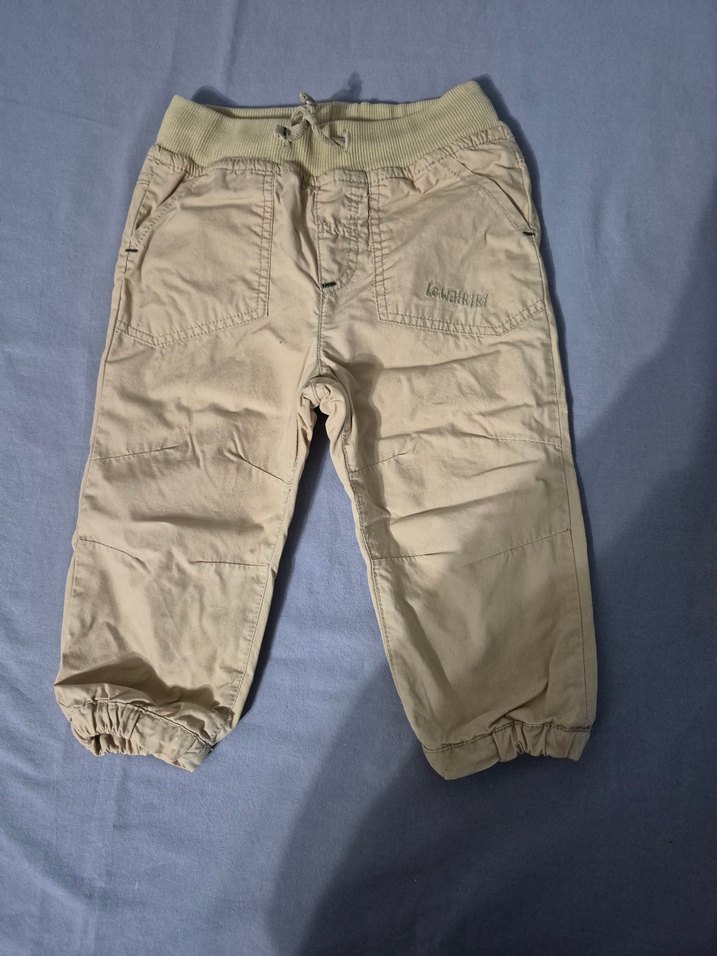 Yumuşak keten kumaştan, bol kesim bej erkek çocuk pantolonu. Elastik bel ve bilek detaylarıyla rahat ve şık bir sokak stili sunar.