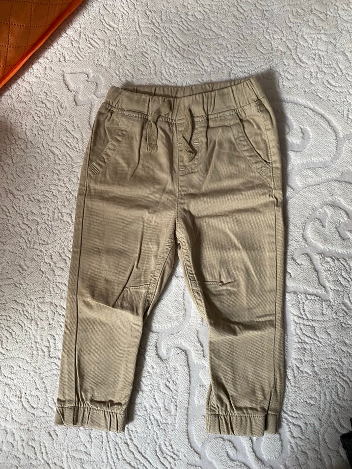 Yumuşak keten kumaştan yapılmış, bol kesim bej erkek çocuk pantolonu. Rahatlık için lastikli bel ve paça uçları bulunur, sokak modasına uygun.