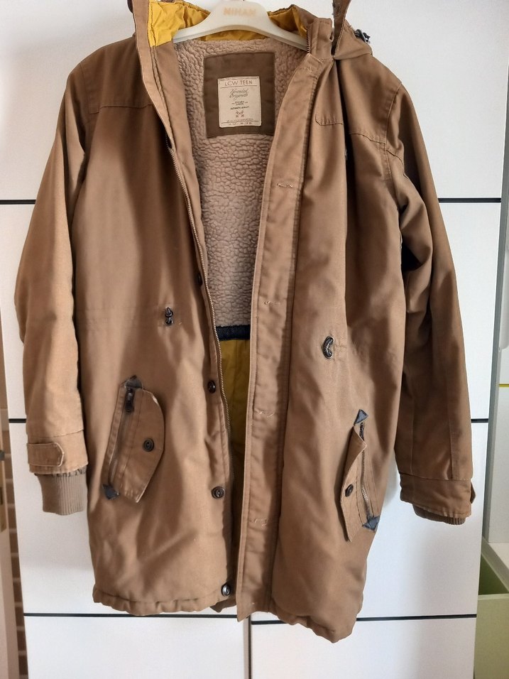 düğmeli erkek çocuk kaban. Notched lapel yakaya sahip, regular fit vr street wear tarzında, sıcak iç astarlı bir modeldir. Sağ cebinin üstünde fotoğrafta gösterdiğim bi defosu mevcut fazla belli olan bi sey degil. Başka defosu bulunmamakta. İç cebi var. İçi yünlü