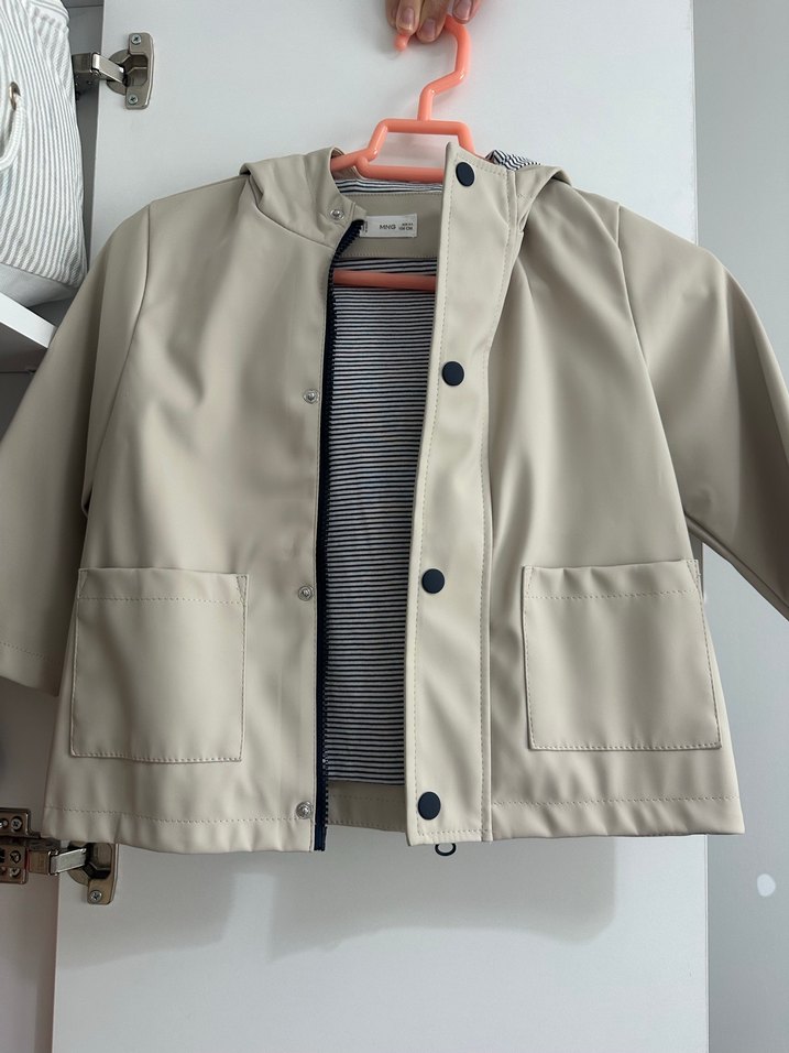 Bej renkli, düğmeli ve kesimli yakalı erkek çocuk yağmurluğu. Düz desenli, regular fit ve iki ön cep detayına sahiptir. ️