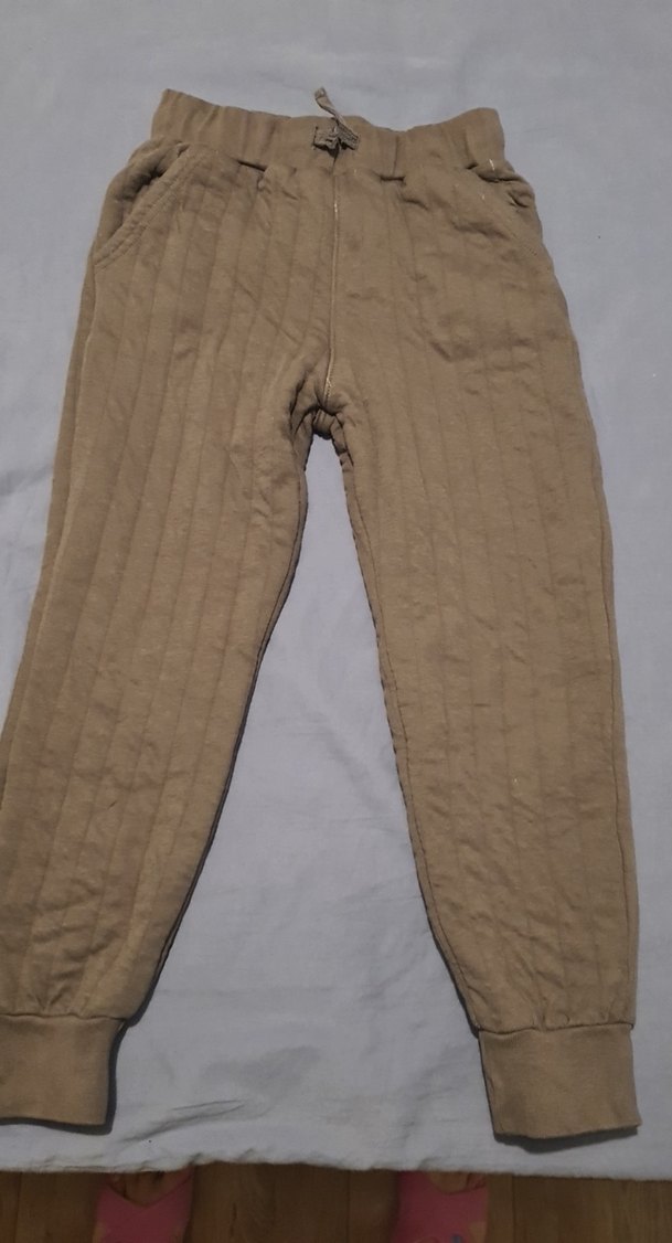 Bej penye kumaştan cift kat, pile detaylı, bol kesim erkek çocuk esofman alti. Sade ve temel tarzda, rahat bir model.