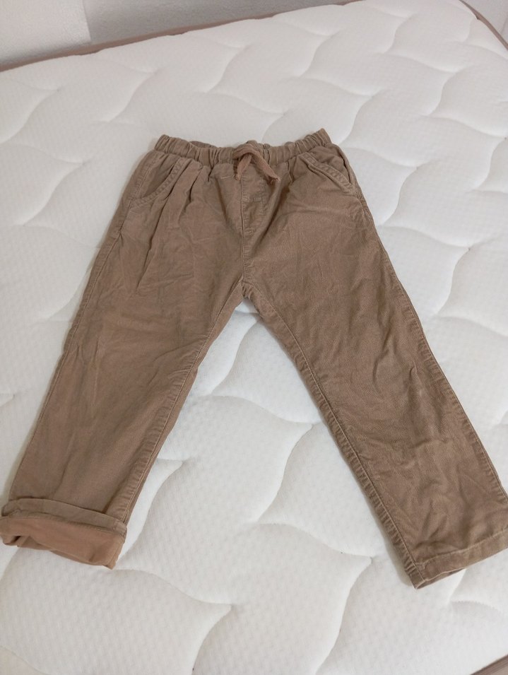 Bej renkli, kadife kumaştan yapılmış, bol kesim erkek çocuk pantolonu, desen içermeyen normcore tarzıyla rahat bir şıklık sunar. astarlı bağcıklı bel