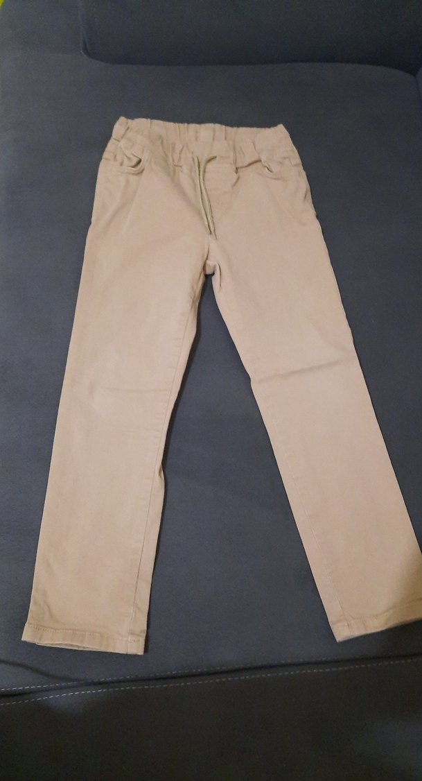 Pastel bej renkli, kemerli ve regular fit erkek çocuk pantolonu. Düz ve pamuklu dokulu kumaştan, normcore tarzında günlük kullanıma uygun.