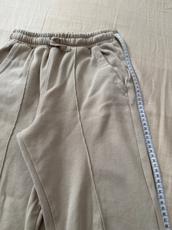 Bej keten kumaştan, rahat kesim ve normal boy eşofman. Günlük kullanım için desen içermeyen, rahat ve şık bir tasarıma sahiptir.
