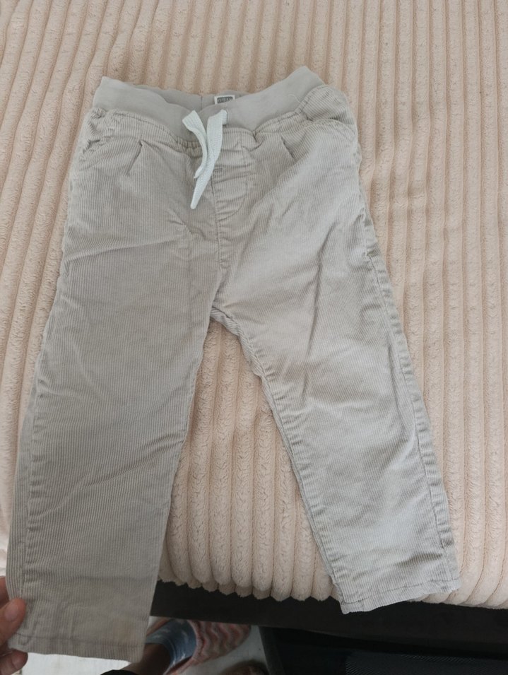 Bej renkli erkek çocuk keten pantolon, rahat kesim ve düğmeli detaylara sahiptir. Desensiz ve trend bir günlük stil için uygundur.
