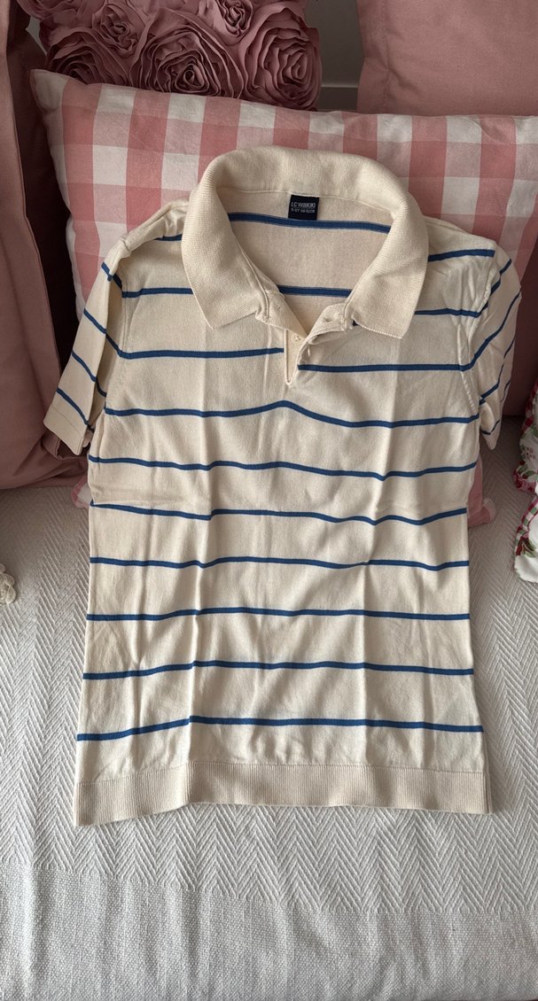 Bej renkli, kısa kollu, düğmeli ve yakalı pamuklu erkek çocuk polo tişört. İnce çizgili ve dar kesim, rahat günlük kullanım için uygundur.