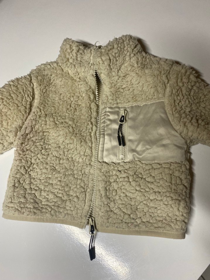 Fazla kullanılmadı tertemız sıfır ayarında Yüksek yakalı, kürk detaylı bej erkek çocuk montu, fermuarlı cep ile. Sokak stili, yumuşak ve sıcak kumaş.