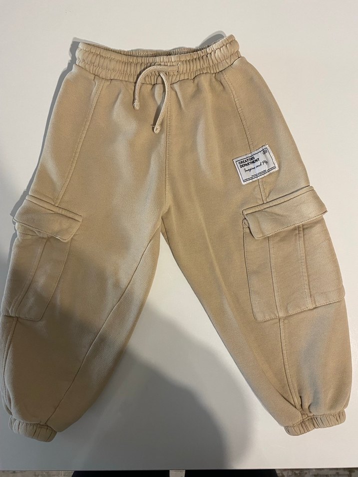 Yumuşak ve sıcak kumaştan, beli lastikli bağcıklı ve yan cep detaylı bej erkek çocuk rahat kesim eşofman altı. Trendy günlük stil için uygundur. Arka cebinin üstünde çok küçük boya lekesi var fotoğrafta mevcut zaten. 5 yaş diyor ama bende 3 yaşa uygun.