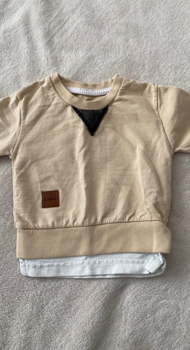 Bej renkli, yuvarlak yakalı ve uzun kollu erkek çocuk sweatshirtü. Pamuklu, rahat kesim, sade ve desensiz tasarım, küçük Zara logo detayıyla sokak stili için uygun.