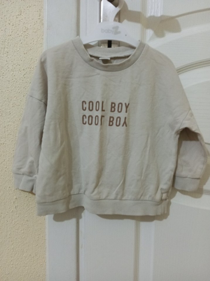 Yumuşak pamuktan yapılmış, bej renkli, uzun kollu ve bol kesim erkek çocuk sweatshirtü. 'COOLBOY' baskılı tasarımıyla rahat bir stil sunar.