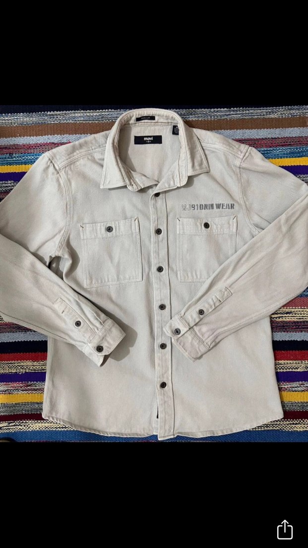 Bej renkli, uzun kollu ve düğmeli erkek denim gömlek Regular fit, desensiz ve günlük kullanıma uygun. 1 kaç defa giyildi sonra yıkandı tertemiz dolapta duruyor