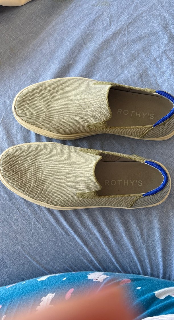 Bej renkli, elastik detaylı espadril ayakkabılar. Yumuşak yıkana bilir kauçuk tabanlı, desensiz ve gri vurgulu, rahat athleisure tarzına uygun. Marka: ROTHY'S