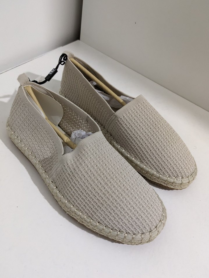 Yumuşak sentetik kumaştan yapılmış, desensiz bej erkek espadriller. Günlük sokak stili için zahmetsiz şıklık sunar. size 46/47