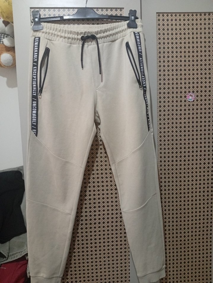 Bej renkli, sentetik kumaştan yapılmış, kemerli ve normal kesim erkek outdoor eşofman. Gri detaylı, günlük kullanıma uygun midi boy bir model. ️