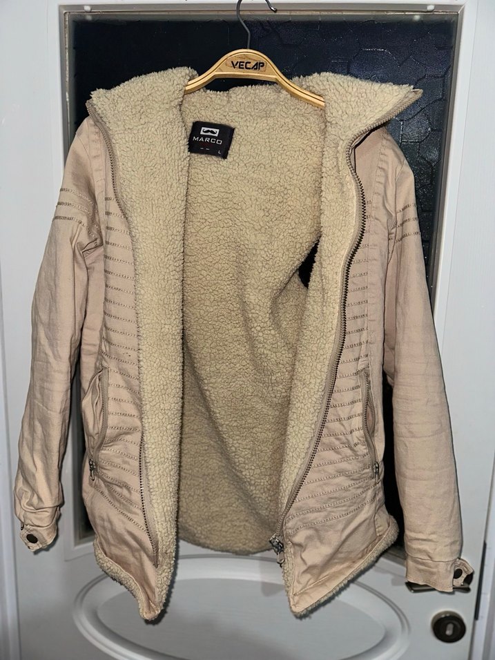 Fit kesim olduğundan M beden giyenler içinde çok güzel cup oturur. İçi Kürklü Bej renkte, uzun kollu ve notched lapel yakalı, kürk detaylı ve yumuşak kumaşlı erkek kabanı. Fitted kesimi ve midi boyuyla günlük kullanıma uygun.